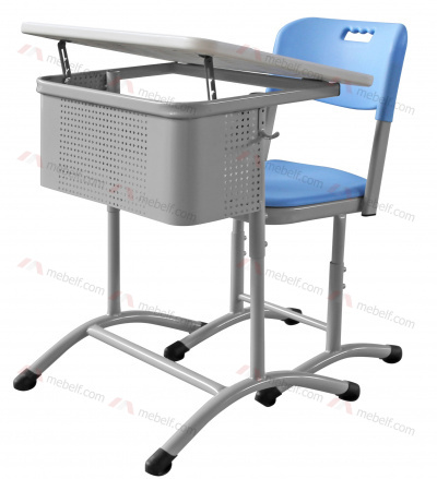| Школьный стол с наклонной столешницей ШСТ15 и стул ШС01, синий и серый |