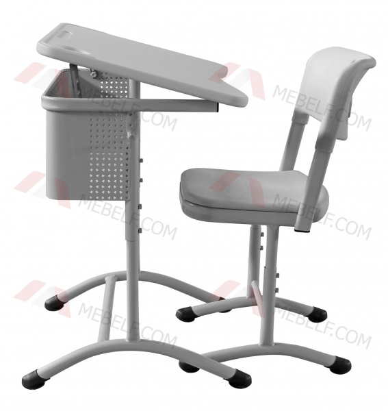 | Школьный стол с наклонной столешницей ШСТ15 и стул ШС01, серый |