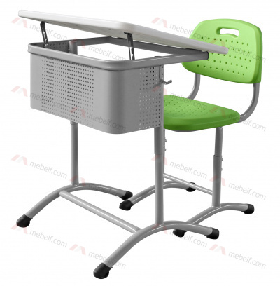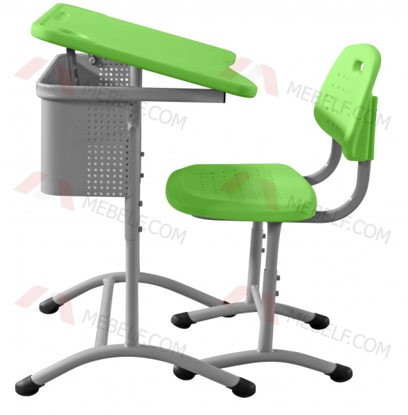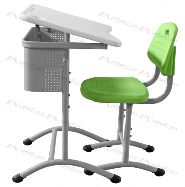 | Школьный стол с наклонной столешницей ШСТ15 и стул ШС03, серый и зеелный |
